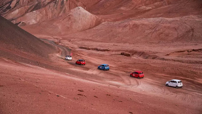 為了印證金彭新能源汽車在高溫下的涼爽和舒適性,下午3點,金彭新能源汽車獅子座車隊在吐魯番匯合,準備跨越熱浪,開展一系列嚴格的專業測試,包括暴曬測試、砂石路測試、揚塵路測試、山路爬坡測試。勇者無畏,火煉真金,獅子座正式向火焰山發起挑戰。