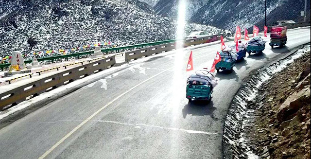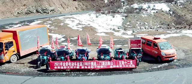 挑戰(zhàn)活動從北山十二盤坡坡底出發(fā),當(dāng)時(shí)氣溫近-8℃,卻絲毫沒有影響挑戰(zhàn)的熱情。在保障安全的前提下,6名騎手駕駛著最大載重2000斤的金彭電動三輪車盤旋而上,最終總耗時(shí)約2小時(shí)成功抵達(dá)目的地。這條有著“青藏高原最美盤山公路”之稱的路線,見證了金彭不斷推動行業(yè)技術(shù)進(jìn)步和服務(wù)用戶的堅(jiān)定決心,再次夯實(shí)了金彭“山地車 大功率”的產(chǎn)品屬性。
