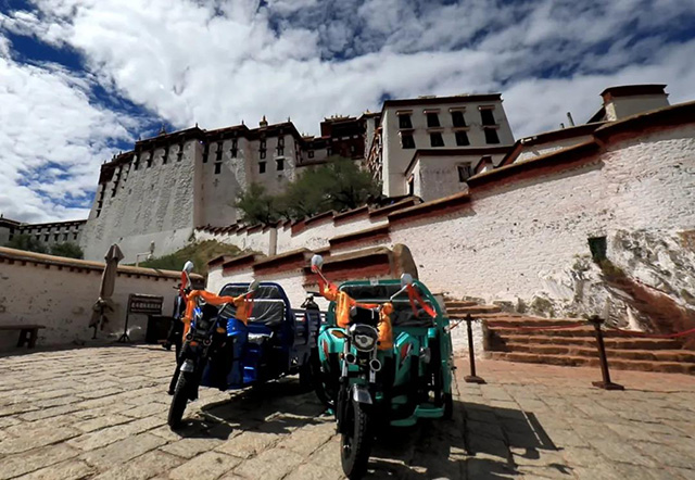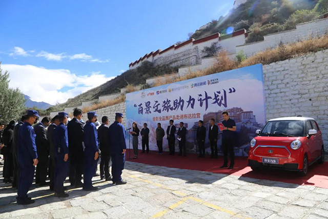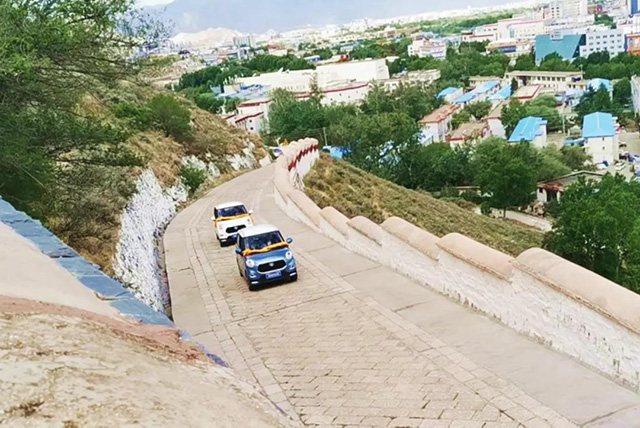 在登頂布達拉宮的彎道考驗中,金彭依靠強大的動力配置在連續30%的陡上行駛自如,順利登上紅山之頂,來到布達拉宮的紅宮腳下,展示了金彭強大的通過性。