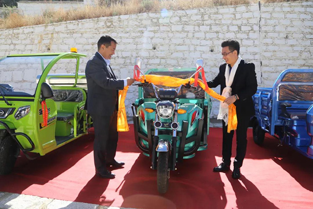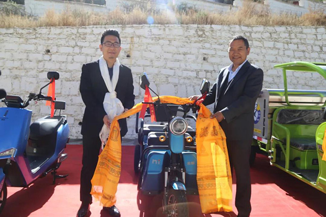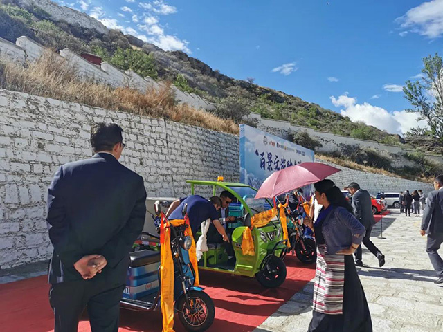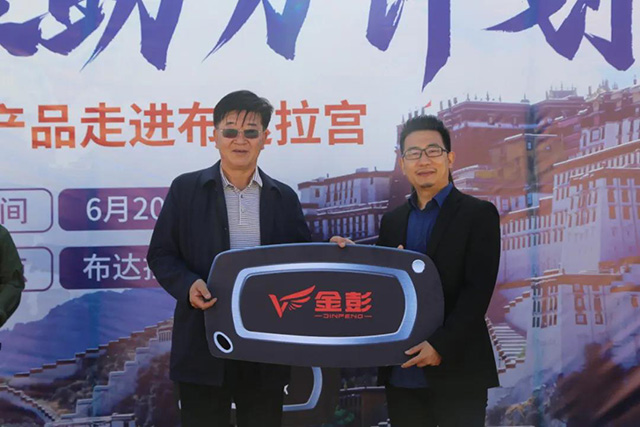 隨后,金彭集團副總經理鹿潔及金彭集團品牌總監趙明,分別代表凌寶汽車和金彭品牌向布達拉宮交接產品。布達拉宮的領導們分別給金彭的產品戴上哈達,布達拉宮的工作人員也對金彭公司的產品表現出濃厚的喜愛。