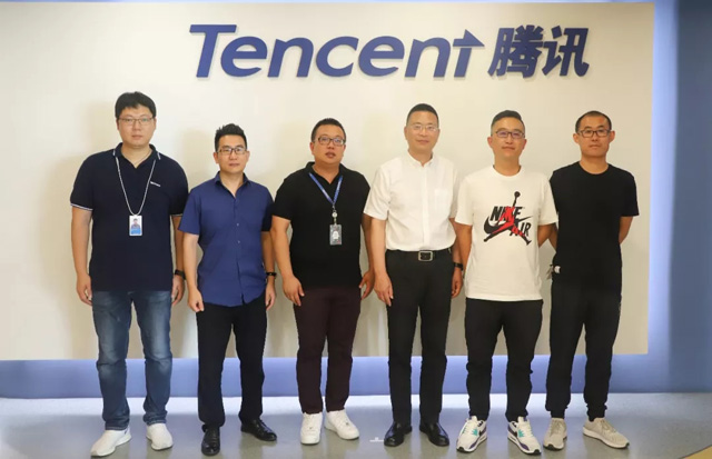 騰訊PCG微視內容總監耿小勇、金彭集團總裁劉志培簽約相關領導在簽約現場合影留念