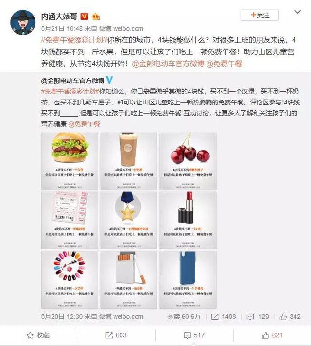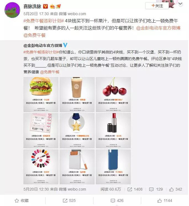 2018年,金彭與免費(fèi)午餐基金共同發(fā)起,策劃了以“添彩計(jì)劃”為主題的專屬公益活動(dòng),以愛之名,為愛添彩。